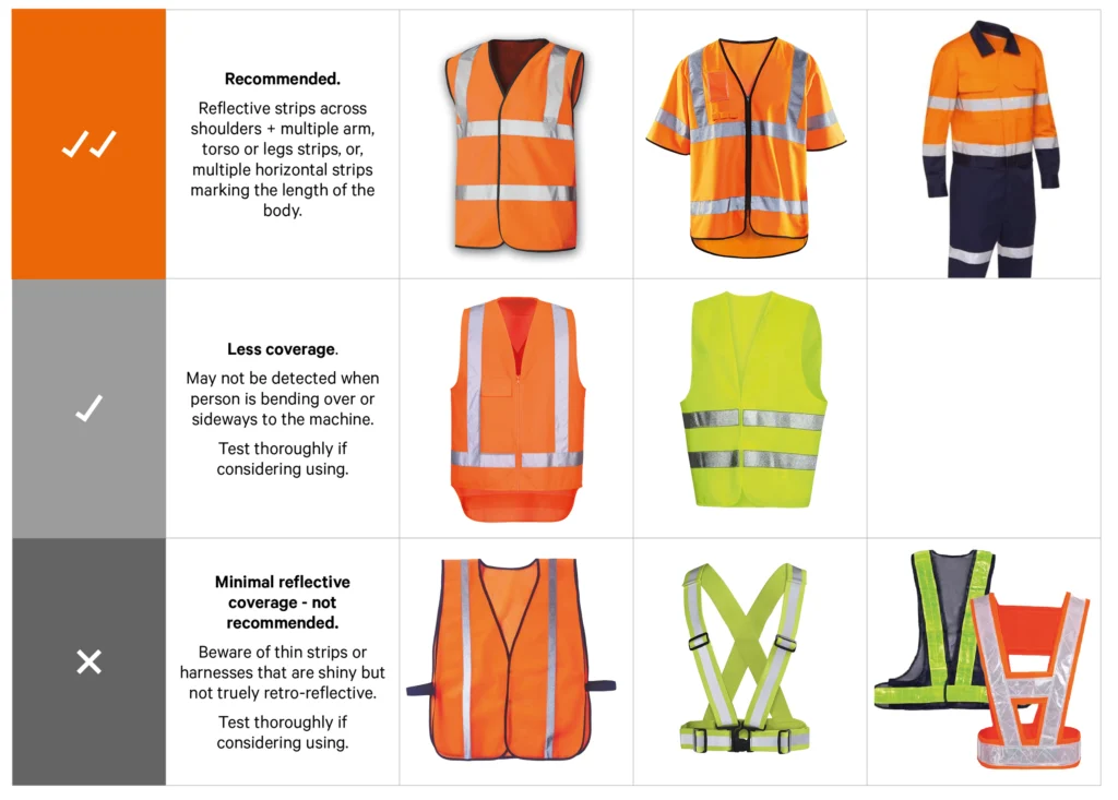 AS/NZS 4602.1 specifies exact requirements for retroreflective tape on compliant garments. These are not suggestions — they are minimum mandatory requirements.